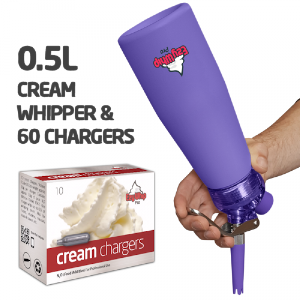 Ezywhip Pro Cream Whipper 0.5L Purple 10 Pack x 6 (60 Bulbs)