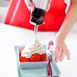 Designed specifically for making whipped cream, but dozens of taste and sweetness variations can be created by simply adding flavoured syrup. Comes complete with one charger and a charger holder.